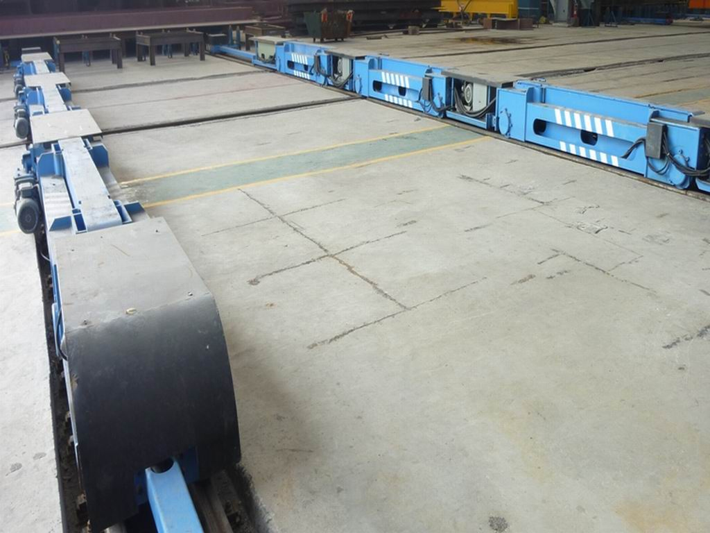 ´¬Ìå·Ö¶ÎÔËËĮ́³µÊÇרÃÅÓÃÀ´ÔËËÍ´óÐͷֶεÄ×°±¸,¿ÉÒÔ½«º¸½Ó×ݹǼ°èì²ÄºóµÄ·Ö¶ÎÔÚÆ½ÃæÏßÉϾÙÐÐÔËËÍ,ÓÉÈô¸É¸öС³µ×°ÓÚ¹ìµÀÉÏÔËÐеÄÁ½×é³µÌå×é³É,¸Ã³µÅäÓж¥Éý¹¦Ð§ÒԱ㶥ÉýºÍÔËËÍÆ½Ãæ·Ö¶Î¡£µ±½«¹¤¼þÔËË͵½Ò»¸ö¹¤Î»¼Ó¹¤Ê± £¬Æ½Ãæ·Ö¶Î±»°²ÅÅÔÚ¾®×ÖÆ½Ì¨ÉÏ £¬ÒÔÊǵ±·Ö¶Î²»ÐèÒªÔËÊäʱ £¬ÒºÑ¹Ì¨³µ½«´¦ÔÚ²»¸ºÖØ×´Ì¬¡£Ã¿×é³µµÄ¶¥Éýϵͳ¿ÉÒÔµ¥¶ÀÉÏÉýϽµ £¬Ò²¿ÉÒÔÁ½×éÁªÔË,×î¸ß³ÐÔØÁ¦¿É´ï450¶Ö¡£