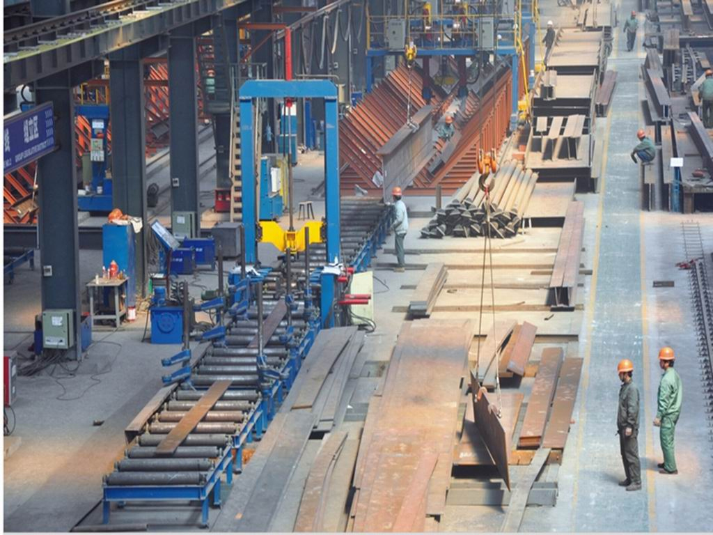 通俗H型钢的生产线组成主要有切割机、组立机、门式焊机、矫正机、抛丸机等主要装备组成,在生产工艺上为单机自力操作,较量无邪,可在差别的工
